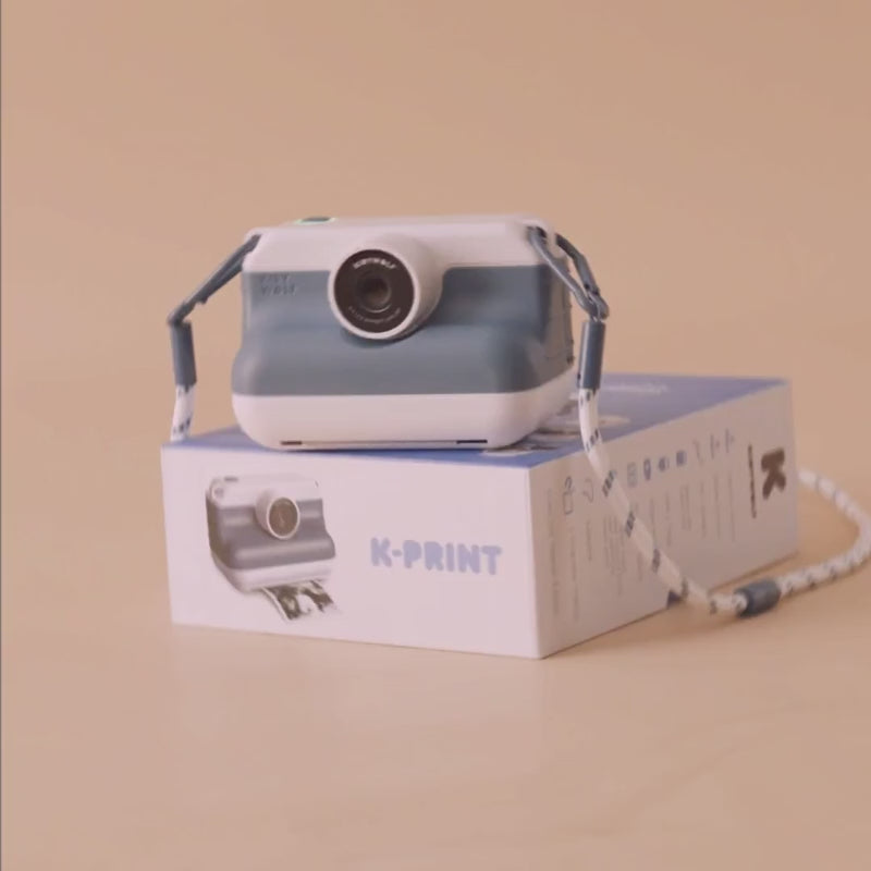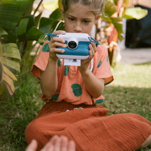 K-PRINT Blue is an instant camera designed for teenagers aged 8 and up. Thanks to its thermal printing technology (on standard or sticker paper), it prints in a flash, without ink or cartridges. With its sleek design, fun filters and included stickers, it has everything you need to capture your best memories, personalise them and share them in style.