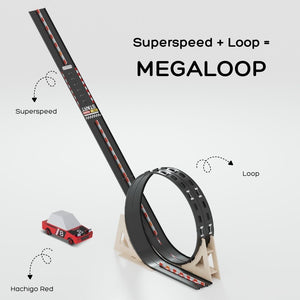 This is a pre-built ROADWORKS bundle set featuring the Superspeed Playset and Loop Add-on to create the Mega Loop.